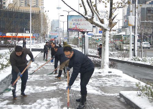 从1月24日夜间开始,苏州市出现一次强降雪天气,由于路面有积雪、结冰现象,给人民群众出行带来很大不便。1月26日早晨,吴中区委组织部积极响应区委、区政府号召,区委常委、组织部长张瑛与部机关全体党员干部一起参加了清扫积雪行动。