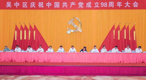 6月30日上午,吴中区召开庆祝中国共产党成立98周年大会暨“不忘初心、牢记使命,凝心聚力推动高质量发展”专题党课,表彰先进、交流经验、总结工作。区委副书记、区长陈嵘主持会议。区委副书记、吴中高新区党工委书记李朝阳通报市委表彰吴中区基层党组织和个人相关情况。区委常委、组织部长张瑛宣读区委表彰“优秀共产党员”“优秀党务工作者”“先进基层党组织”和命名“‘担当作为’村(社区)党组织书记”等决定。区委书记唐晓东出席会议并讲授专题党课。