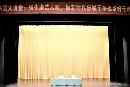 7月19日下午,2019年第5期“东吴大讲堂”在区公共文化中心保利大剧院开讲。国家检察官学院研究员、全国职务犯罪及腐败预防专家张亮教授受邀作了《强化廉洁从政,做新时代忠诚干净担当好干部》的专题讲座。讲座由区委常委、纪委书记、监委主任方伟军主持。区四套班子领导、全区副科级以上干部、全区纪检监察干部以及部分优秀年轻干部700余人到会听讲。