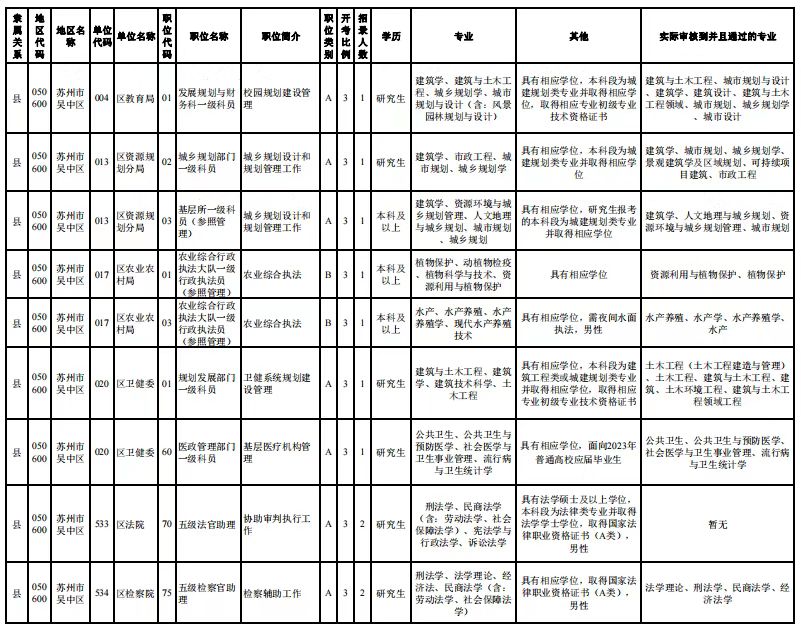 吴中区2023年度考录公务员有关职位专业审核情况公示(2022-11-11)